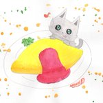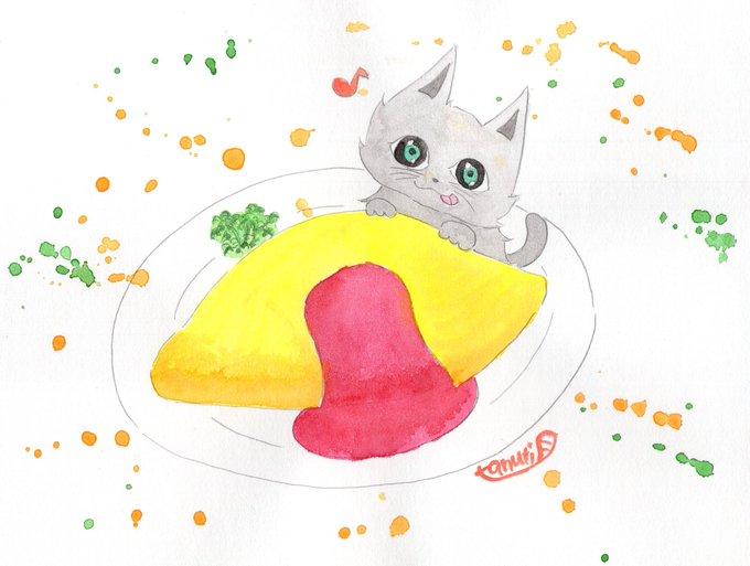 4 37 オムライス食べたい♪🥚✨✨✨ #イラスト #お絵描き #アート #絵 #水彩画 #アナログイラスト #透明水彩 #猫 23/03/11 15:25