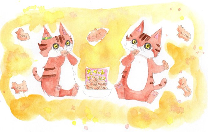 美味しいもの💖💖💖 #イラスト #お絵描き #アート #絵 #水彩画 #アナログイラスト #透明水彩 #猫
