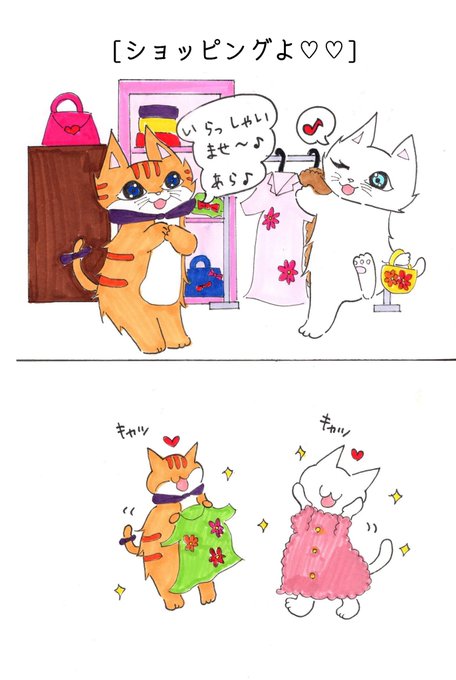 [ショッピングよ💖💖💖] #イラスト #お絵描き #アート #絵 #アナログイラスト #コピック #猫 #漫画