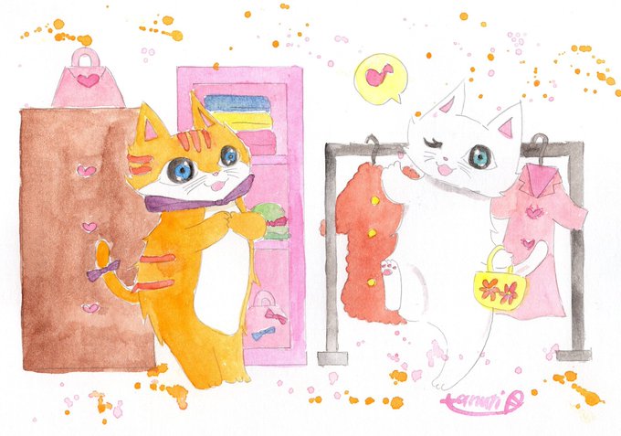 にゃんことショッピング💖💖 #イラスト #お絵描き #アート #絵 #水彩画 #アナログイラスト #透明水彩 #猫