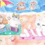 3 23 まだ早いけど… にゃんこと夏🍹✨ 描きました!💖💖 #イラスト #お絵描き #アート #絵 #水彩画 #アナログイラスト #透明水彩 #猫 23/04/04 20:52