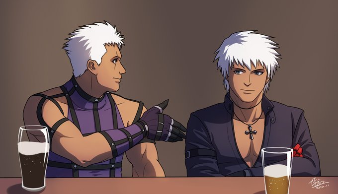 Although Krizalid hates K' more than K' hates Krizalid, I think Krizalid would probably make the first move if they ever make peace🤔 (PS. that's Guinness in Kriz's glass, authentic Irish beer lol) #KOF #格ゲーキャラ描こうぜ