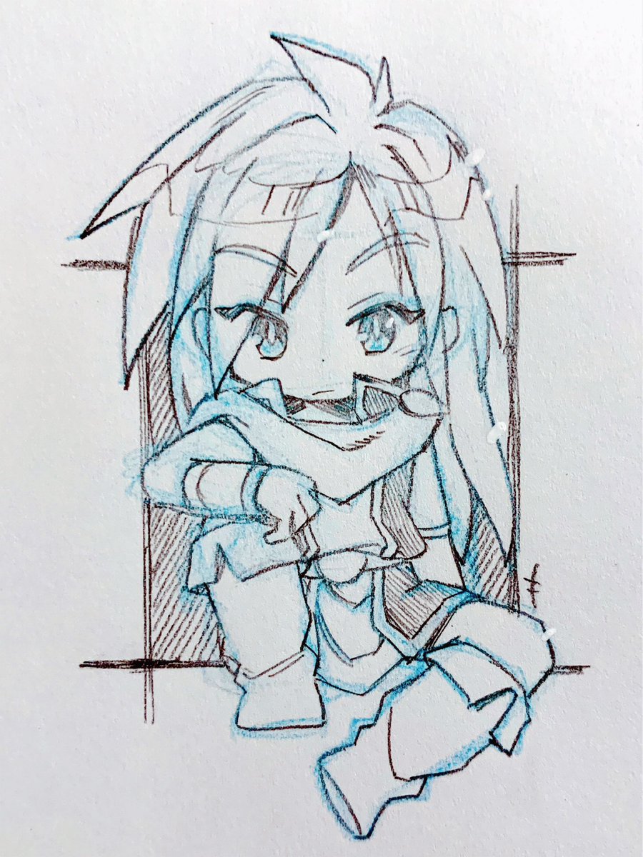 おはよう 16分 水色鉛筆から2Bのシャープペンに変えてラフ描いてみたけどやっぱり水色だな…と思った あんまり時短にならない