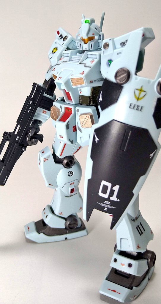 HGパワードジム完成です! 【主な仕上げ内容】 ・筆塗り部分塗装 ・ビーズなどを使ったディテールアップ(頭部バルカン砲など) ・チッピングなどのウェザリング 久しぶりに沢山ウェザリングして楽しかったです🎶 #ガンプラ #ガンプラ好きと繋がりたい #ガンプラの画像を貼るとRTされると聞いて