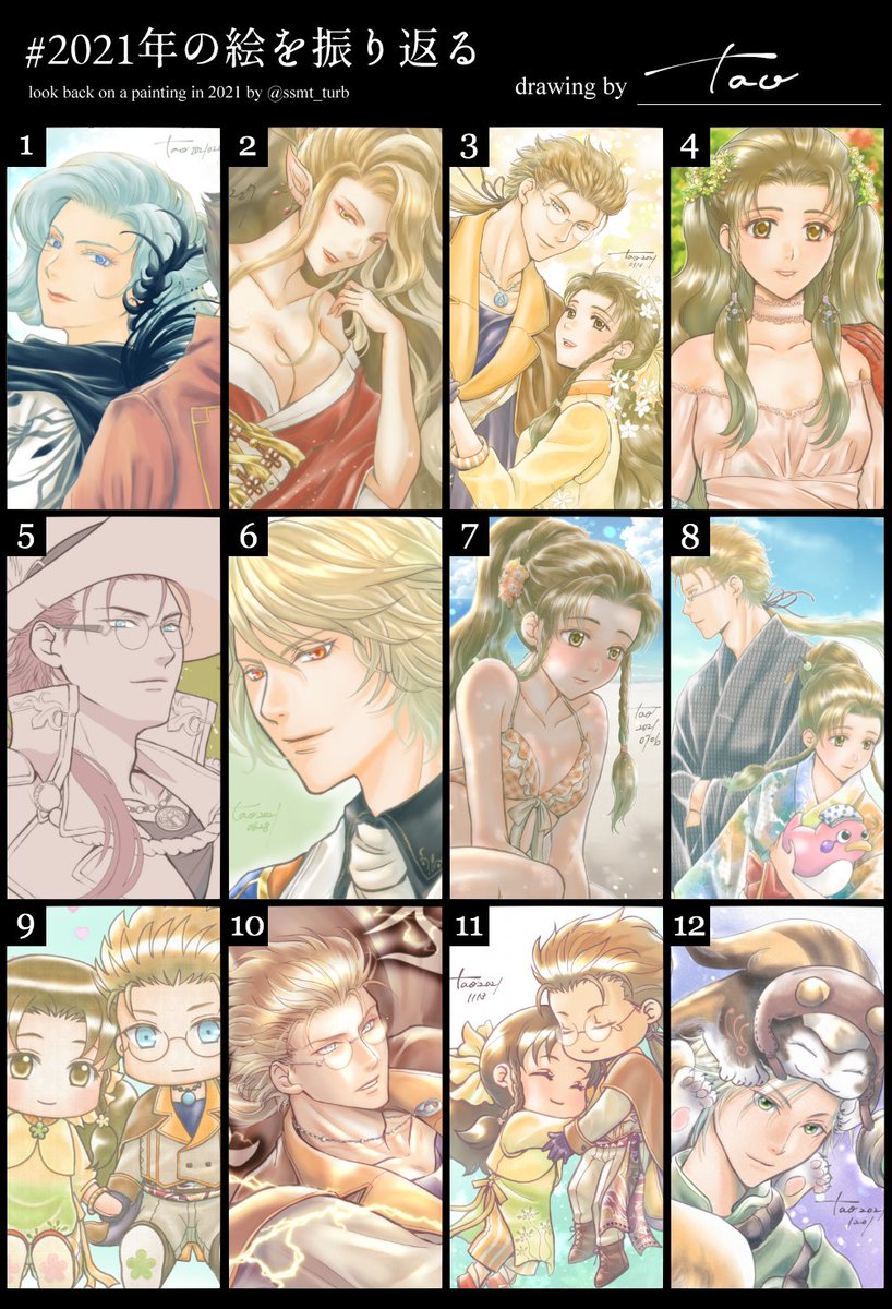 #2021年の絵を振り返る カラー絵がない月は制作した月に入れたイラストもありますw 1月は漫画ばかりだった。6月はほろわさんの推しを描くのに1か月くらいかかったような気が? あの時はありがとうございました🥰 トムサラだけで埋められなかったの残念w来年はトムサラとその他で出来るといいな☺️