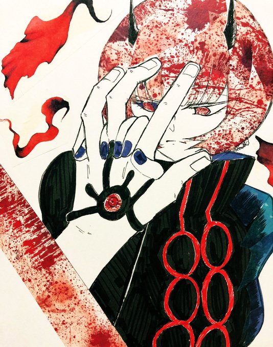 #アフト版深夜の真剣お絵かき60分一本勝負 お題「黒」「赤」