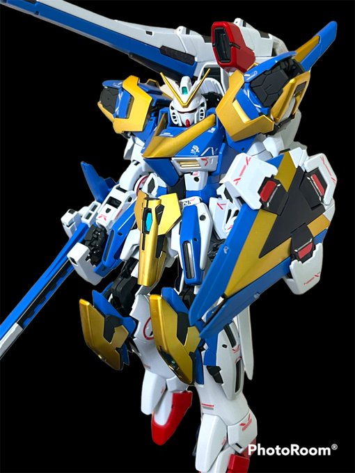 MG 1/100 V2アサルトバスターガンダム Ver.Ka完成 パーツ自体や組立方法が洗練されていて組立時に感動する程です。完成時に思わず見とれるカッコ良さ。また、成形色、特に金メッキの綺麗な色合いは非常に気に入っており、水転写デカールは最低限にしてます。 #ガンプラ #V2アサルトバスター