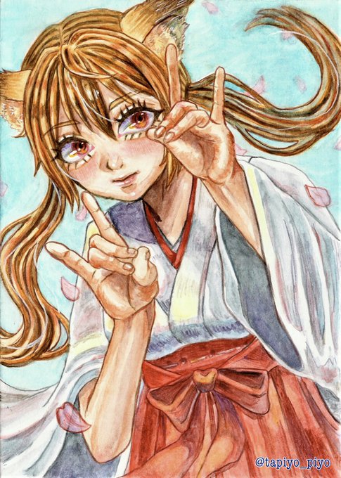 巫女さん🦊 #イラスト #アナログイラスト
