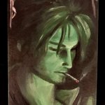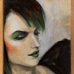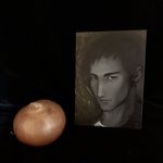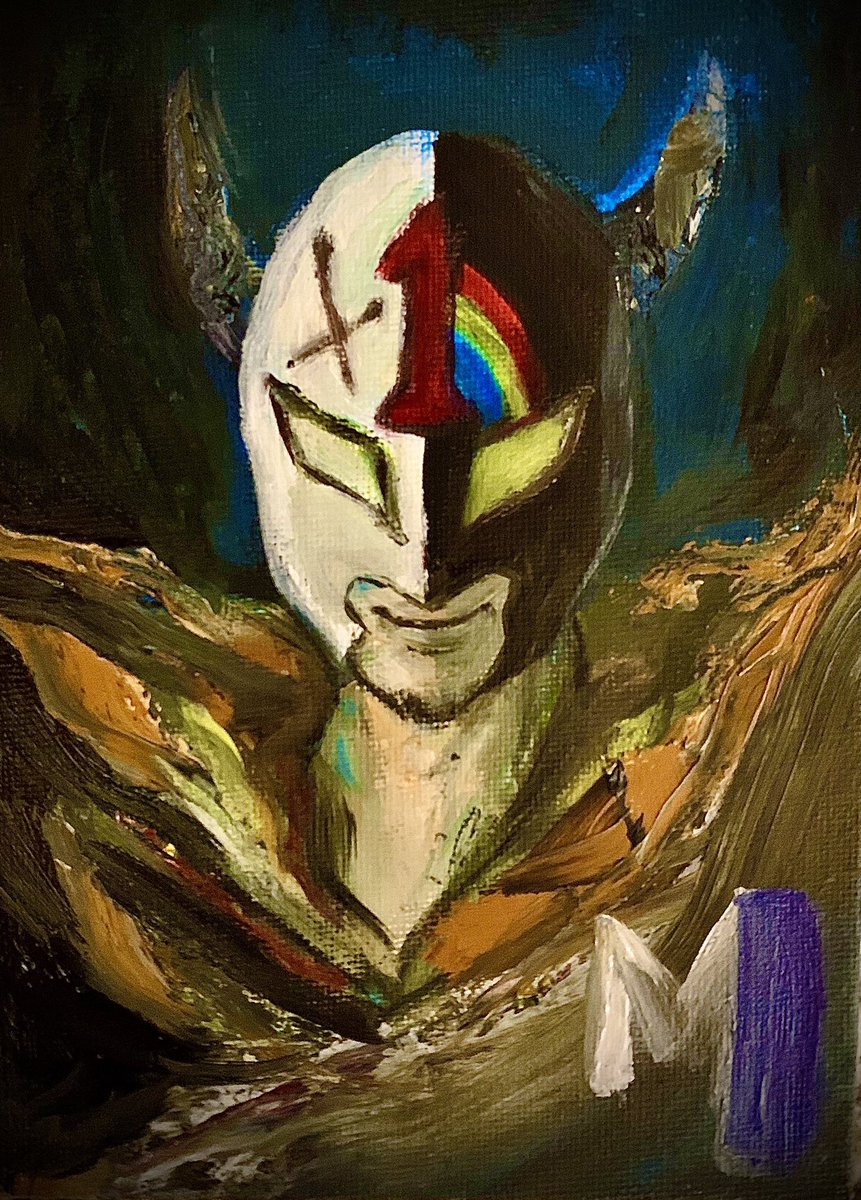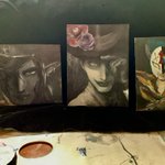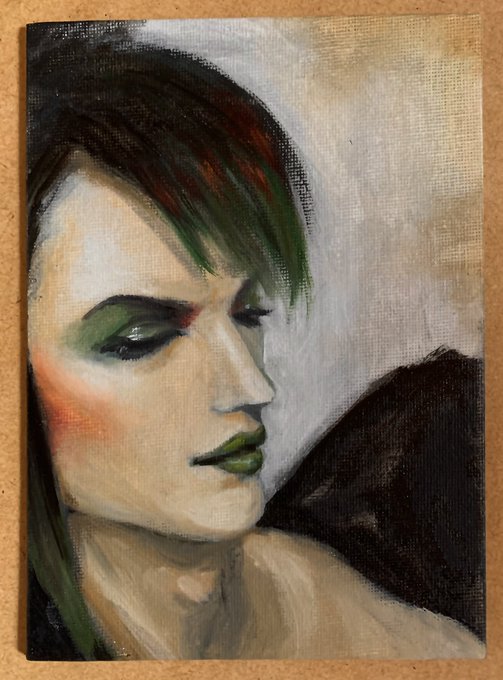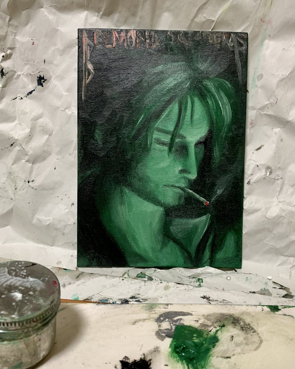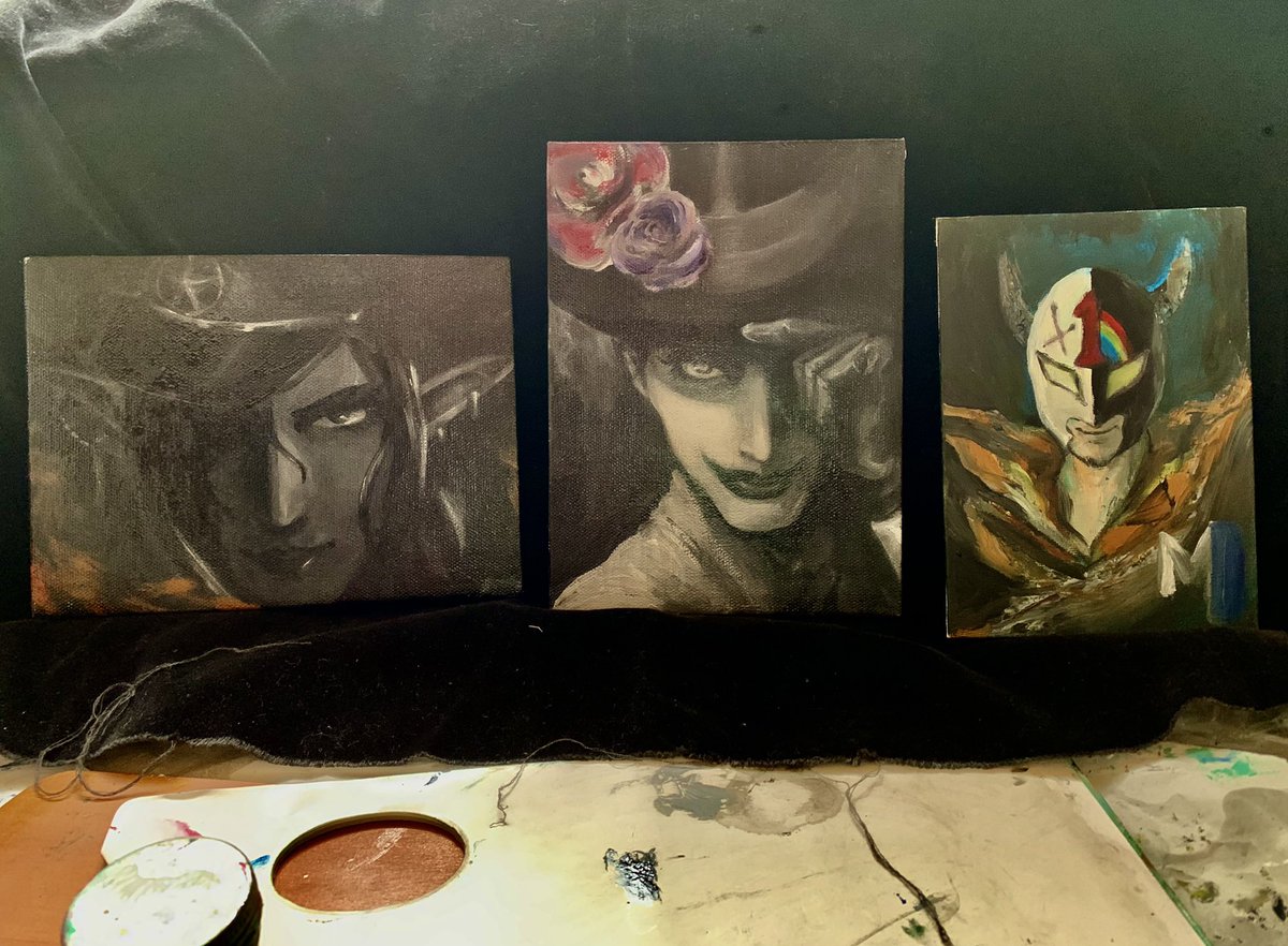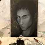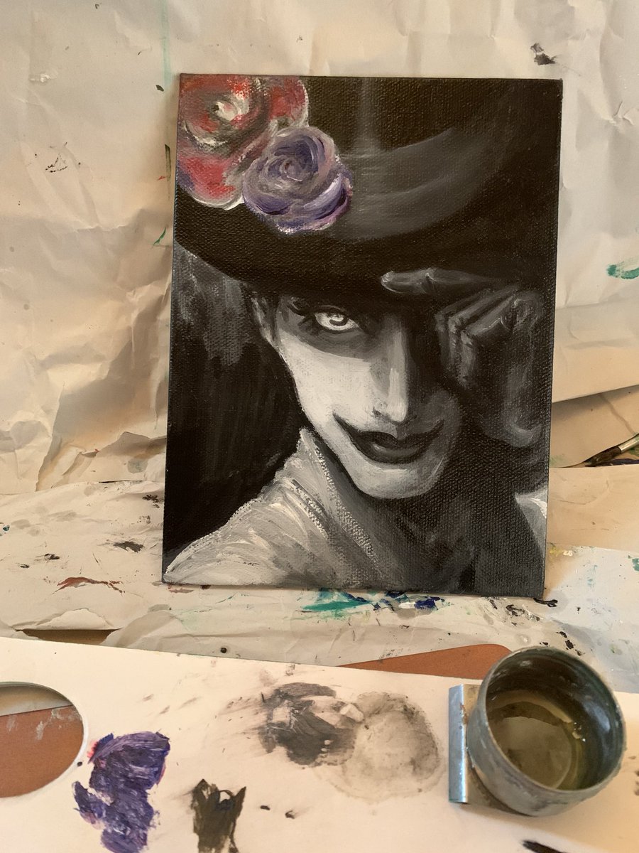 初めて油絵の具で 恐ろしい 恐ろしい でびでびでびる様を描きました!なんて恐ろしくてフォトジェニックなんでしょう… 大きさの比較対象として、トマト缶を置きました #でびるさまにささげるえ