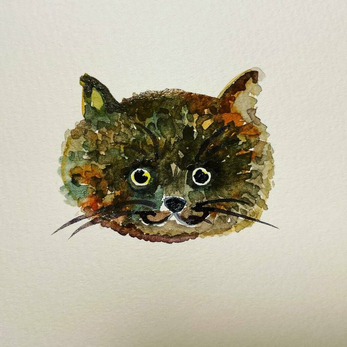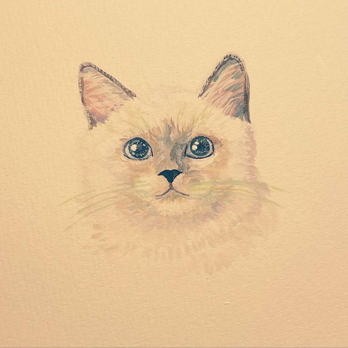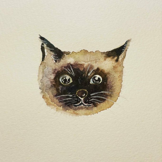 ①友達と話したワンちゃんからイメージしたもの ②猫の喉を撫でるとこういう顔をする時がある #猫 #猫部 #イラスト #イラストレーション #イラストレーター #水彩 #顔彩 #犬 #子犬 #puppy #pup #cat #cats #illustration #illustrator #drawing #watercolor #watercolorpainting
