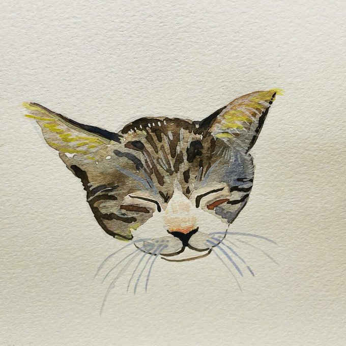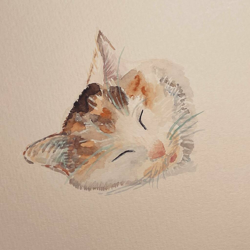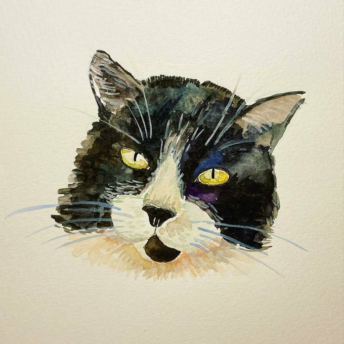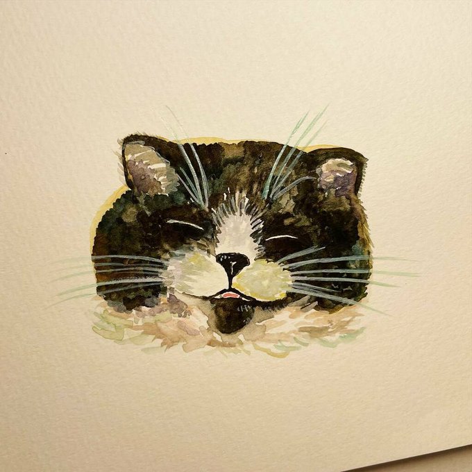 実家の猫が、すごい安らかな顔で昼寝してたのを参考に。 #猫 #猫部 #ハチワレ #イラスト #イラストレーション #イラストレーター #水彩 #顔彩 #blackandwhitecats #cat #cats #catstagram #illustration #illustrator #drawing #watercolor #watercolorpainting instagr.am/p/CVDjgQjBZt6/