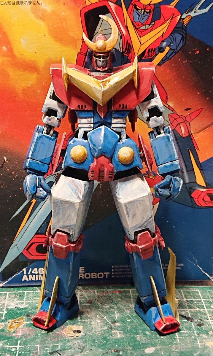 バンダイ 1/144HG グレンダイザー 完成!最低限のゲート跡と合わせ目の処理をしただけですが、塗りはコッテリめにしてみました。すべてアクリジョン筆塗りです。 #アクリジョン #筆塗りで作ったプラモ晒そうぜ #グレンダイザー