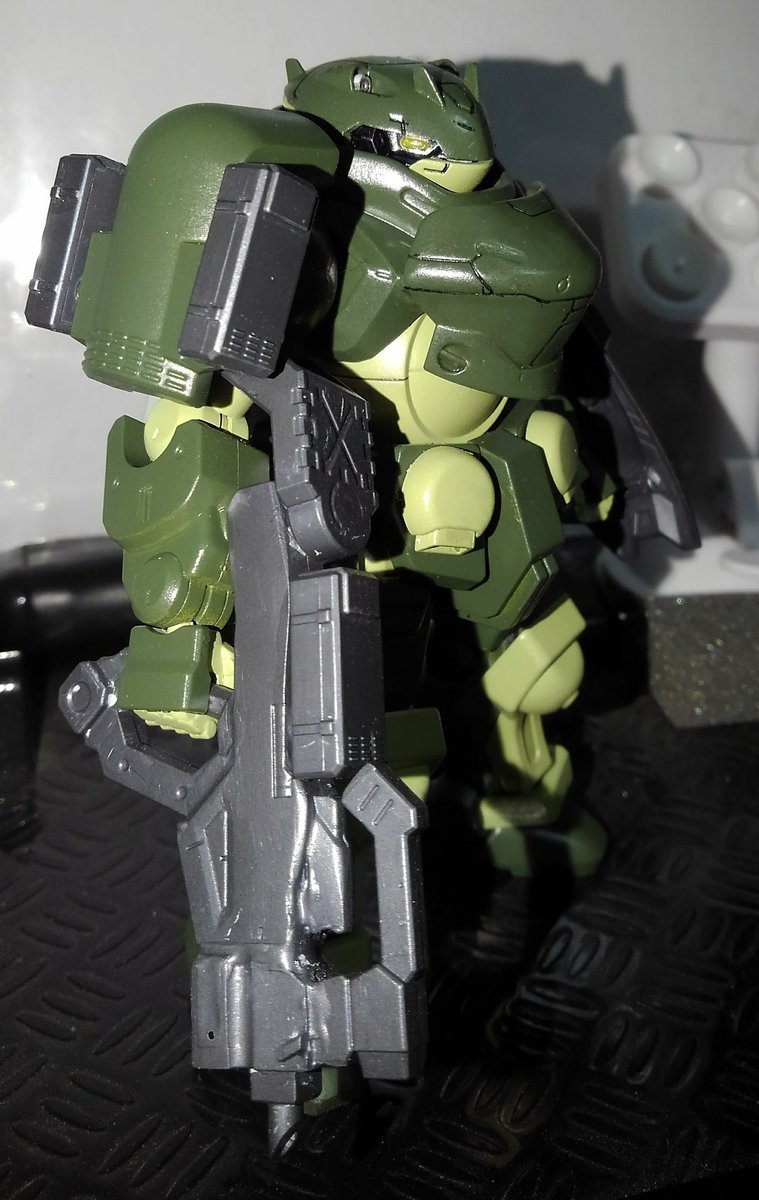 1 2 結構前に仮組した物を塗装しました。 グリモアの胴体とグシオンの頭の違和感がなくてよかった。 あと胸はマロンディの胸 武器はP-90をイメージして作成 機体名はグシモアですかね。 別名-蛙男(frogmen) これも前回のと一緒にプラモ大戦に出そう。 #ガンプラ #ガンプラの画像を貼るとRTされると聞いて 20/03/14 02:28
