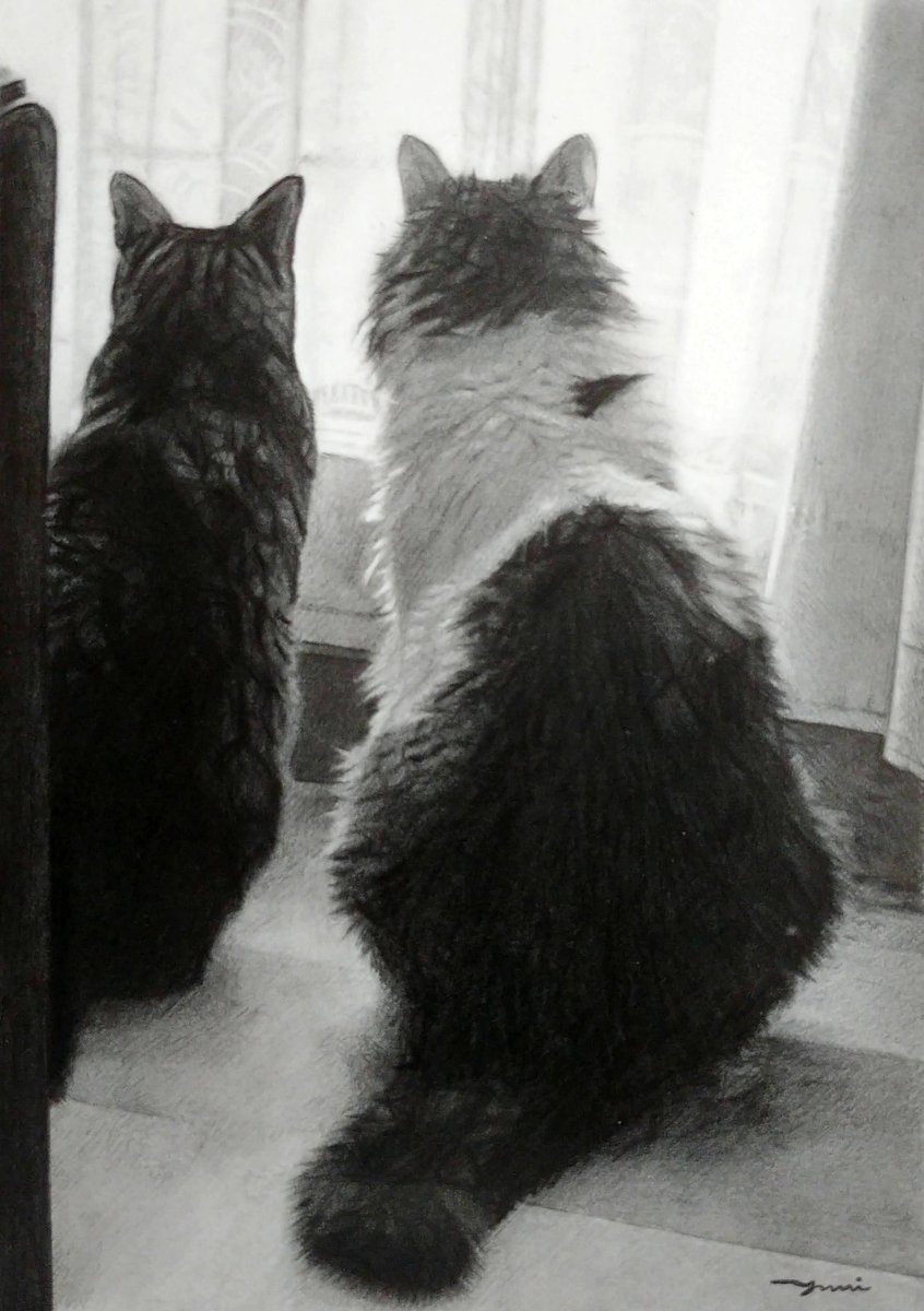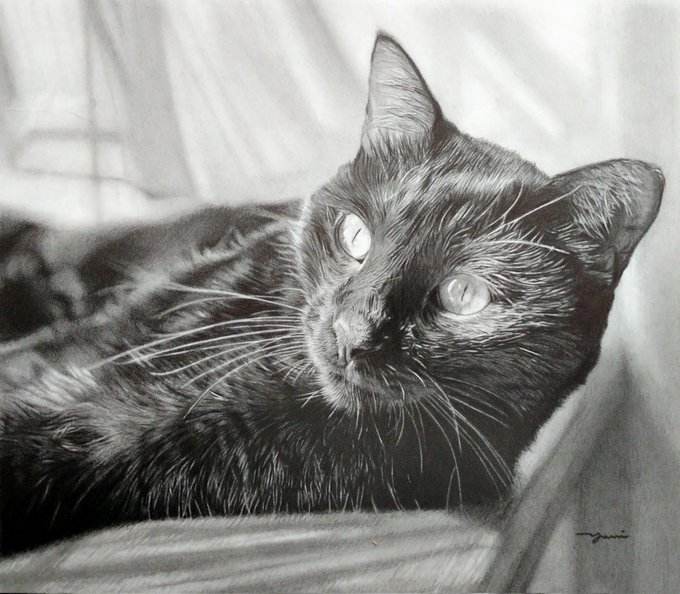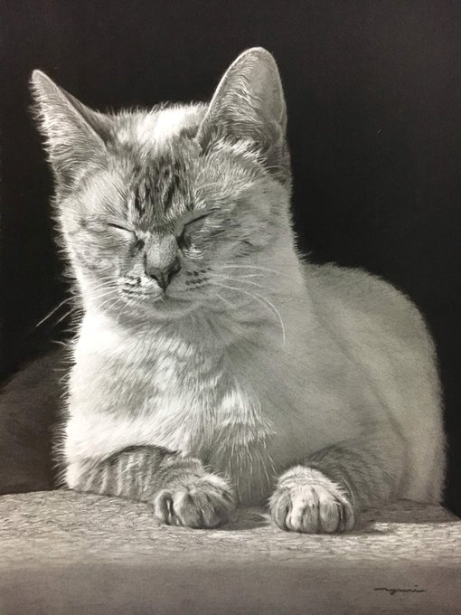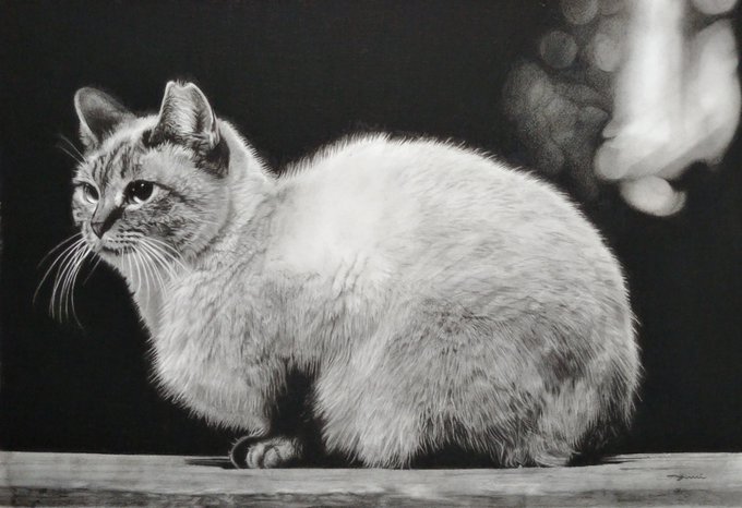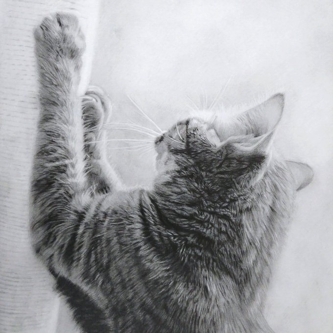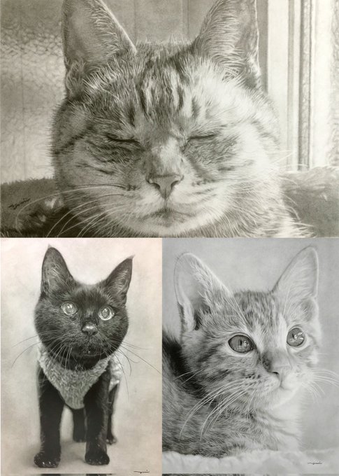 【猫のえんぴつ画パネル展のお知らせ】 6月1日から15日まで、 #ブックファースト阪急西宮ガーデンズ 店様にて、 絵本と画集の作品パネル展が開催されます✨ 広めのスペースだそうです! ぜひお近くの方は足をお運びください😊😺 私も行く予定です。 大きなチャビと写真撮りたいな😍 #鉛筆画