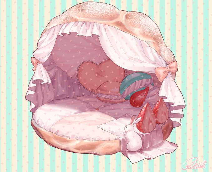 見えない部分も可愛く描けたと思うのでこちらも! こういうソファ?的なもの欲しいなと思いながら描きました🍓