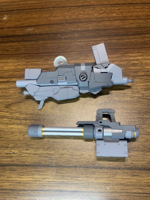 武器だけ塗装完了。細かい塗り分けもできるだけ…ガトリングは特に! ジャンクパーツから作ったバズーカっぽいものもなかなかいい感じに! デカールとかでどう変わるかな… #ガンプラ #ガンプラの画像貼るとRTされると聞いて #ガンプラ好きな人たちと繋がりたい
