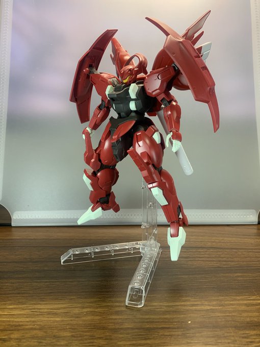 エアリアル完成!最終回には間に合わず…改修型をメインに通常型のパーツ入れてます! バックパックはエールストライカーをベースに改造。六枚羽っぽいシルエットがお気に入りです! #ガンプラ #ガンプラの画像貼るとRTされると聞いて #ガンプラフォトミッション2023 #ガンプラ改造 #水星の魔女