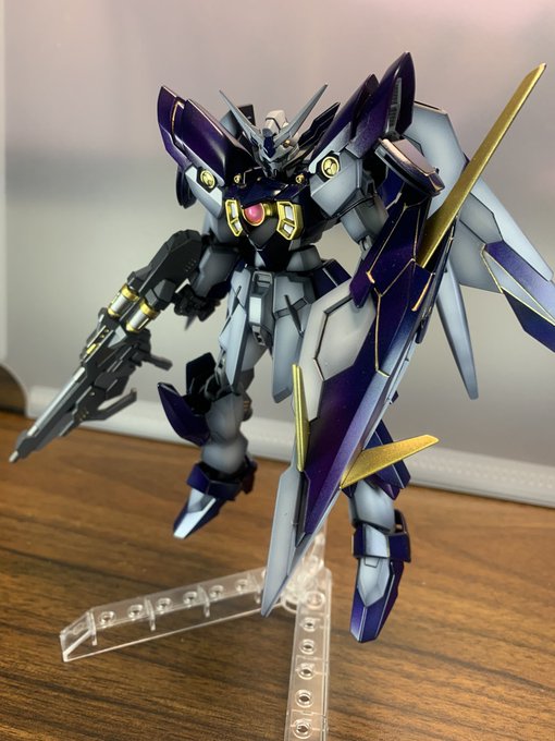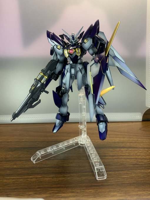 ダリルバルデ完成。 カラーリング変更とシナンジュのバックパックを付けただけ。なかなかいい感じにまとまったかな!暗い紫と金の差し色がお気に入り! #ガンプラ #ガンプラの画像貼るとRTされると聞いて #ガンプラ好きな人と繋がりたい #ガンプラ改造 #紫色のプラモデルなんでもOK