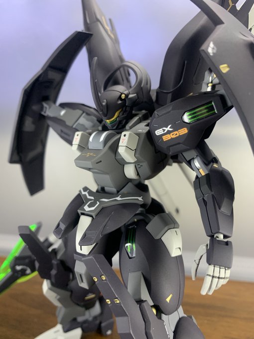 ノワール風バエル、塗装がひと通り終わったのでとりあえず。 黒にグレーでの墨入れ、全然うまくいかないなぁ…大人しく黒入れるか… あとはデカールとトップコート! #ガンプラ #ガンプラの画像貼るとRTされると聞いて #ガンプラ改造 #ガンプラ好きと繋がりたい #ガンダムバエル