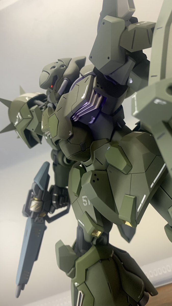 ヘキジャを改造。 ・足をモモとスネでかなり延長。 ・胴体は前後に長かったので幅詰め。 ・腕と頭を交換。 自分的には細身にまとめた感じです。  #ガンプラ #ガンプラの画像貼るとRTされると聞いて #ガンプラはどんな自由な発想で作ってもいいんだ #ガンプラ好きとつながりたい #ガンプラ改造