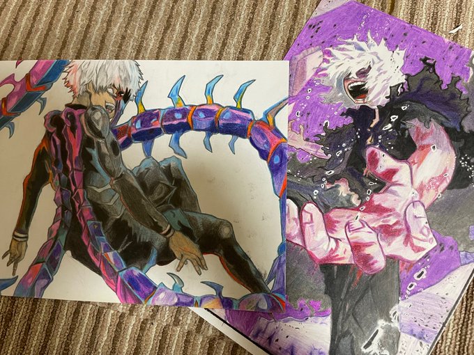 1 13 #過去絵 #東京喰種 #僕のヒーローアカデミア #絵描きさんと繋がりたい #模写 #金木研 #死柄木弔 #絵 #色鉛筆 22/07/05 16:47