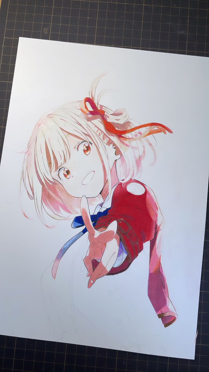 今日終わっても、せっかくなら日光で撮りたいので投稿は明日にします🫡 #wip #色鉛筆 #模写 #リコリコ19話