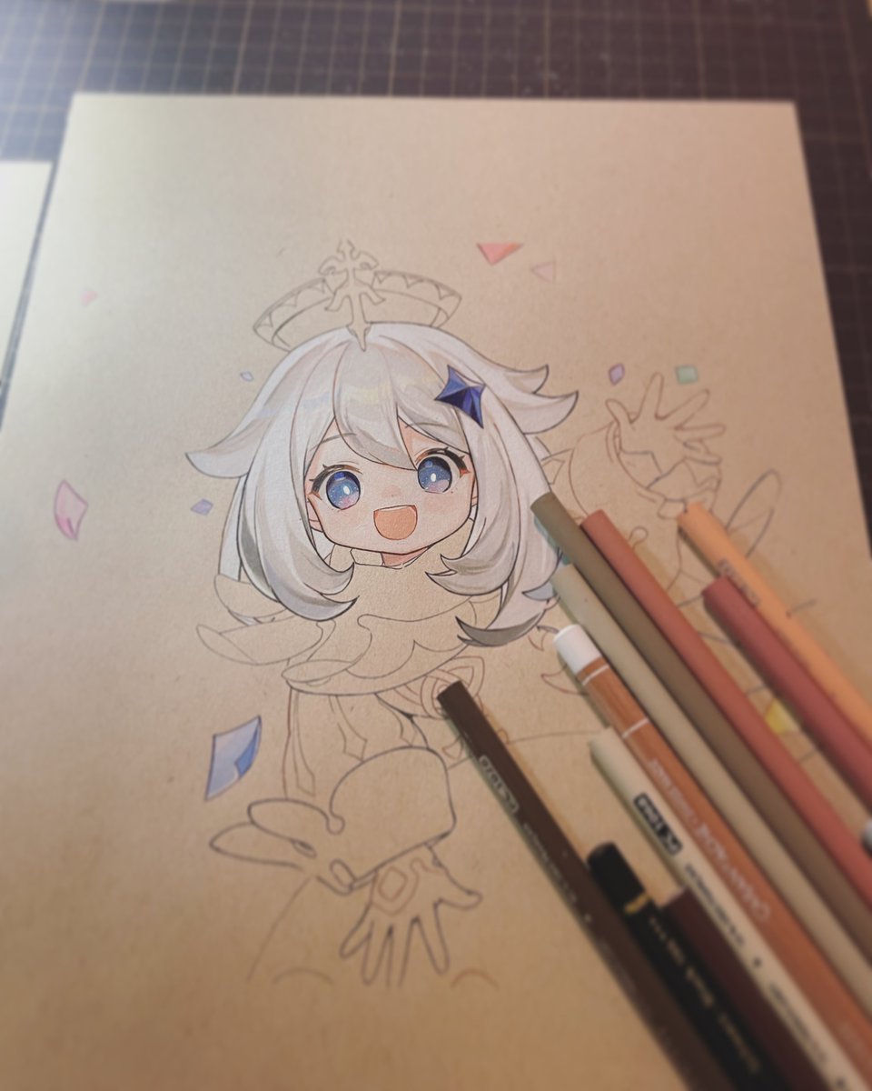 今日で完成近くまで持って行きたいな〜と思っております💪 #WIP #Paimon #Genshin #模写 #色鉛筆