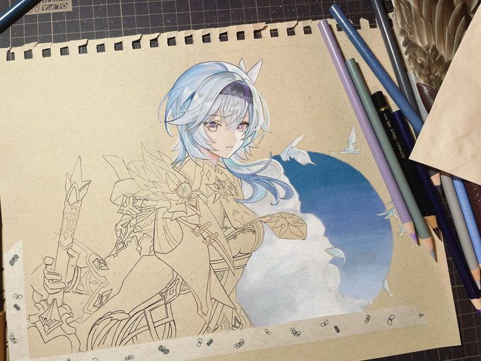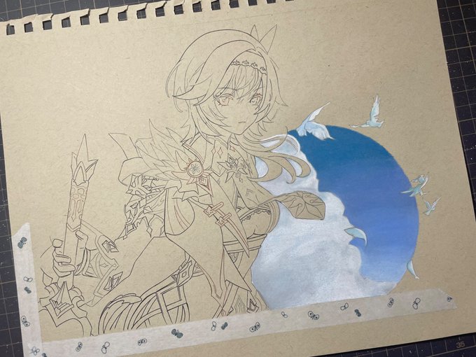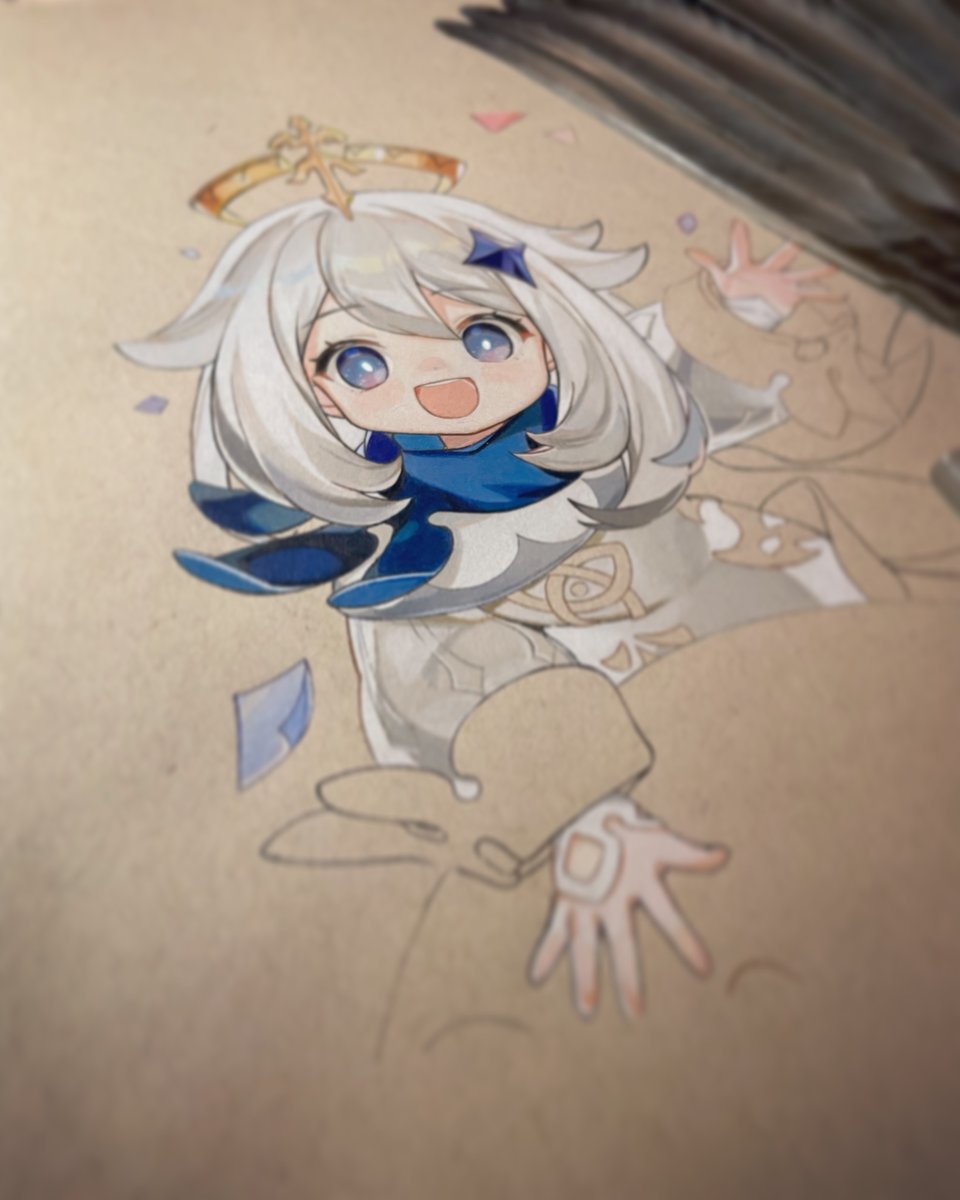 毎日ちょびちょびっとしか進まない😇 #wip #genshin #Paimon #色鉛筆 #模写
