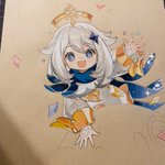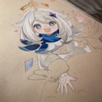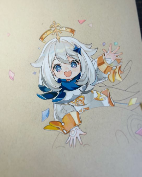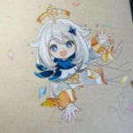 喉痛くても描く✍️ #色鉛筆 #原神 #パイモン #模写
