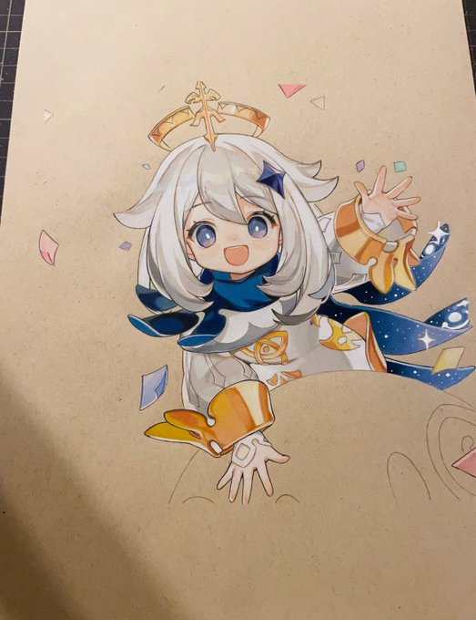 13 91 パイモン完成!! 風スライムどうしようかな… #wip #Paimon #Genshin #色鉛筆 #模写 23/01/14 20:28