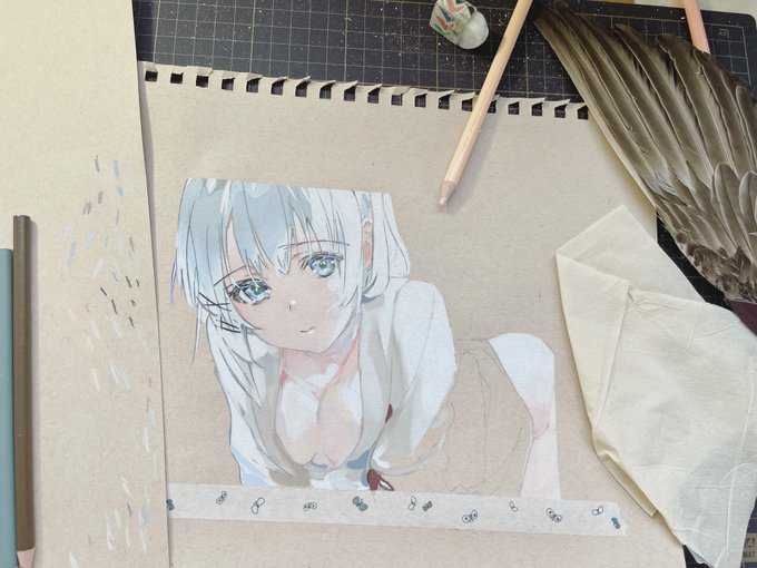 1 17 この絵完成したので今晩中に投稿したいなと思います✨ あの30リツイートでえっちい絵を描くタグより描きました! #シエスタ #色鉛筆 #模写 23/05/12 18:24