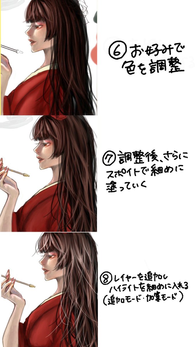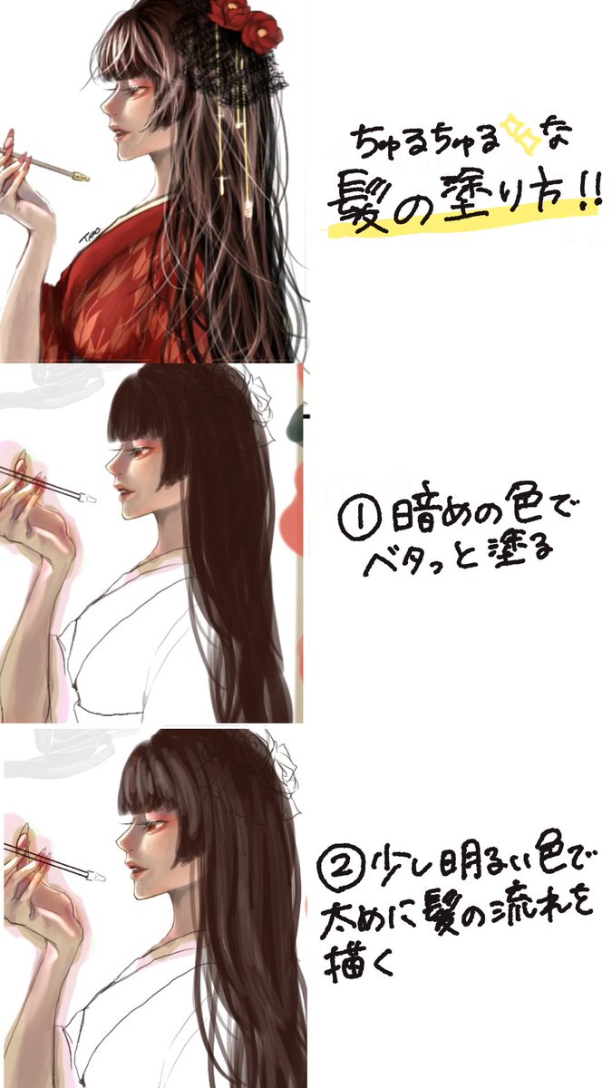 超自己流、髪の毛の厚塗りメイキングです! 簡単にちゅるちゅるつやつやな髪の毛が描けます🫶 #イラスト #イラストメイキング #厚塗り #digitalart #digitalpainting