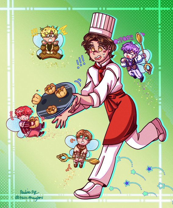 Strawberry fraisier and framboise, happy happy macaroon happiness made go! ♪♫ 🧁🍰 Yumeiro Patissiere AU but it's just Huenini and four sweets spirits for maximum chaos™ 😼 #TXT #TXTfanart #kpop #artistsontwitter