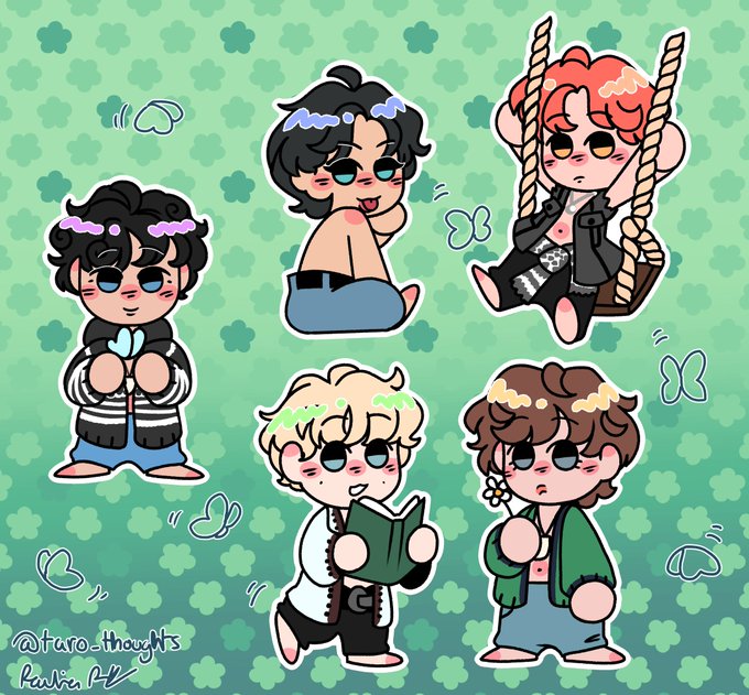 💚🍪TXT as Cookie Run characters!🍪💙 Our beloved idols have turned into cookies!! Inspired by different treats, can you tell what outfits and eras their designs are based off of? 😼 (1/4) #TXT #TXTFanart #kpopfanart #digitalart #cookierun #artistsontwitter