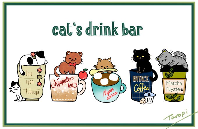 『cat's drink bar〜hot menu☕️』 ホットドリンク5種追加しました✨✨ #イラスト #ねこ #ゆるいイラスト #illustration #絵柄が好みって人にフォローされたい #秋の創作クラスターフォロー祭り