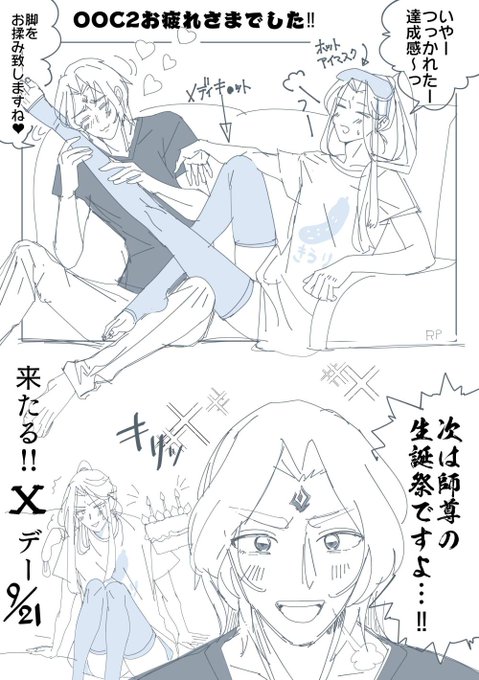 33 152 #さはんOOC2_アフター イベントお疲れさまでした~のイラスト☺️謎時空アフターびんちゅ つぎは来たる師尊の生誕祭ですな…どきどき 22/09/19 00:46