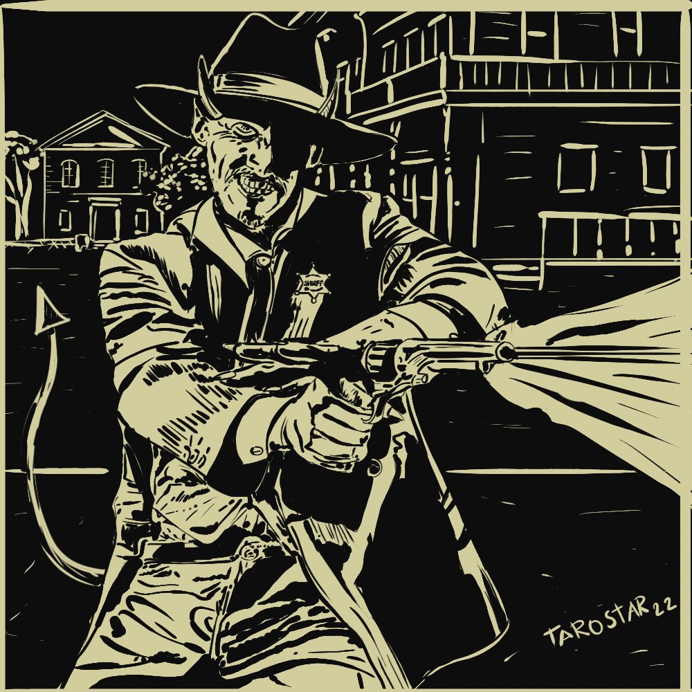 Matando o Diabo Billy Gun se torna um foragido da Justiça... Tema FORA-DA-LEI do #mementober #mementober2022 do @LoboLoss do@garagisaloon #inktober #inktober2022 #illustration #ilustração #desenho #rpgart