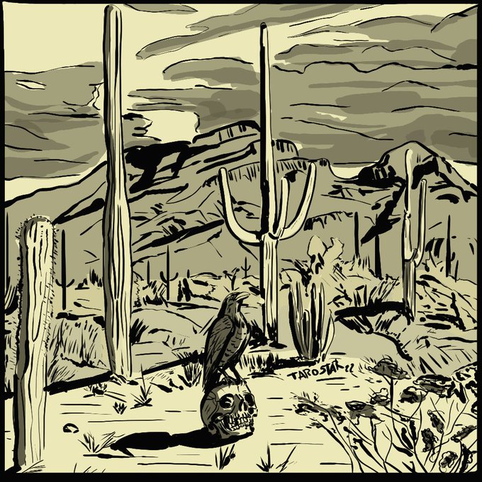 "O árido descanso final!!" Tema "Deserto" do #mementober #mementober2022 do @loboloss_ do @garagisaloon #inktober #inktober2022 #illustration #weirdwest #ilustração #desenho #rpgart #western