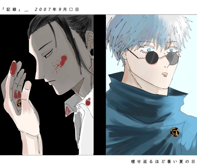 五「…なぁ、いま足袋見えなかった?」 硝「…」 五「見えてるだろ絶対」 硝「…あっちでもエセ教祖やってるの か」 五「見えてんじゃん」 お盆: 死者が帰ってくる日 #呪術廻戦ファンアート #さしす