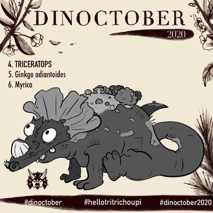 Jour 4,5,6 Si quelqu'un ce demandait à quoi pourrait ressembler un triceratops qui ce fait gauler pendant qu'il se torche le cul avec la moquette du salon, bah ça devrait ressembler à un truc comme ça. (On adore les couleurs ici) #Dinoctober #inktober2020 #hellotritrichoupi