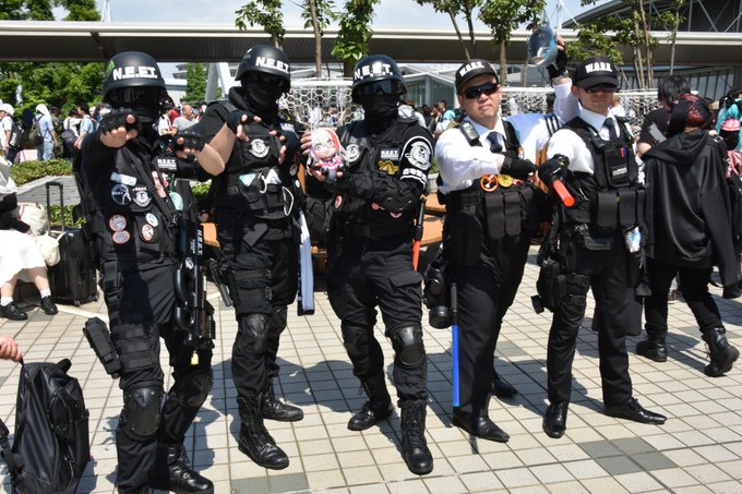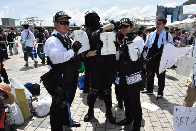 27 35 毎度お馴染みの自宅警備隊N.E.E.T.のみなさん コミケの雑踏警備なら2号警備だけど、その装備は3号警備に近いような #自宅警備隊 #NEET #コミケ96 3日目 エントランス #C96 #C96コスプレ ありがとうございました。 19/08/11 21:04