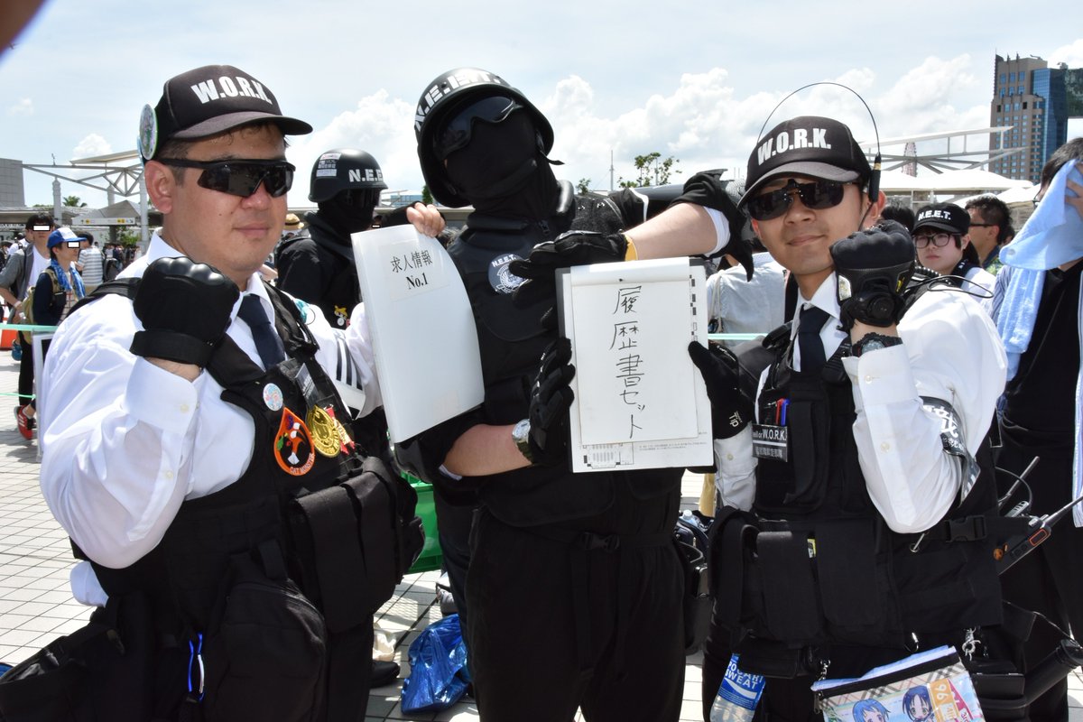 3日目に引き続き4日目もいらした自宅警備隊N.E.E.T.のみなさん 女性隊員もいるんですねぇ #自宅警備隊 #NEET #皆就職斡旋部隊 #履歴書セット #求人情報 #コミケ96 4日目 エントランス #C96 #C96コスプレ 撮影ご協力ありがとうございました。