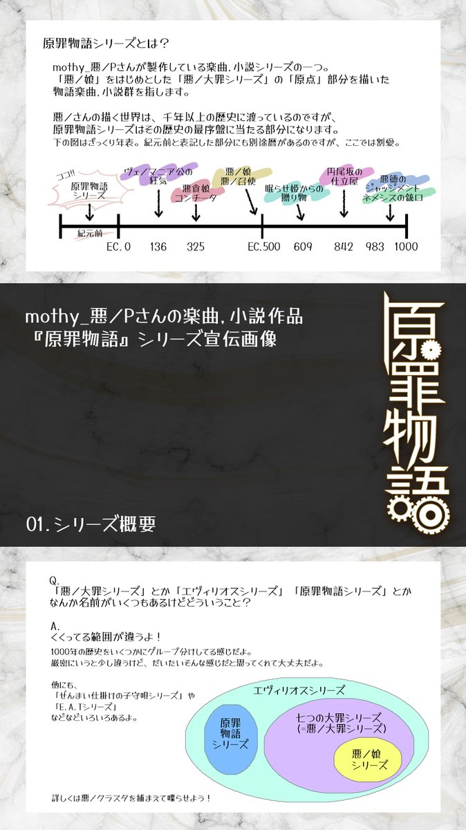 【布教画像/※非公式,タップ推奨】 mothy_悪ノPさんの『原罪物語』シリーズの布教画像を製作しました!来月のマジミラで書籍版頒布が予定されています&電子書籍は現在頒布中ですので動画と併せて是非! #evilliouschronicles #悪ノはいいぞ #悪ノ布教