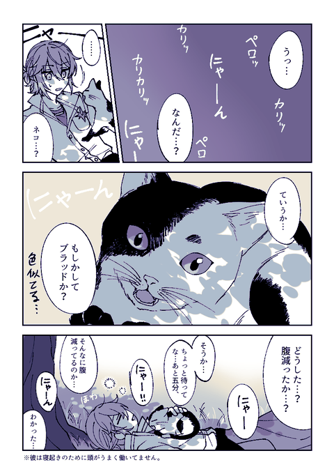 77 404 #ブラネロ版お絵描き文字書き一本勝負 @brnr_60 お題「昼寝」「触れる」 ※お題の触れるは猫とのです 遅刻投稿すみませんーーーーーー!!!!!!!!!! 20/09/27 22:13