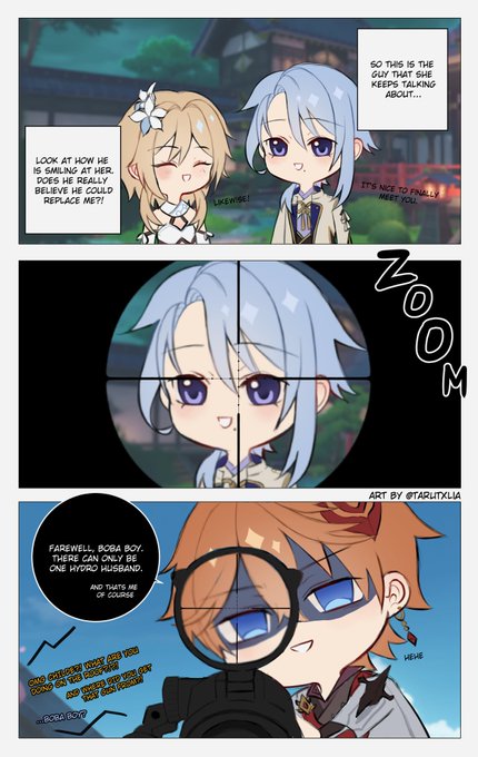 The battle of the hydro husbands?! (rkgk) - This is for all the Childe mains who will pull for Ayato tomorrow btw. Ginger boy is gonna feel so jealous #GenshinImpact #原神 #Lumine #Ayato #Childe #Tartaglia #Chilumi #Ayatolumi #Comic #Art #Genshinfanart