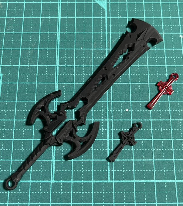 めちゃカッコイイオリジナル武器の設計できたので見て。ハサミギミック搭載の大型ブレード。 量産が間に合えばワンフェス(5-20-01)にて販売します。間に合わなかったら展示のみにて… #WF2023W