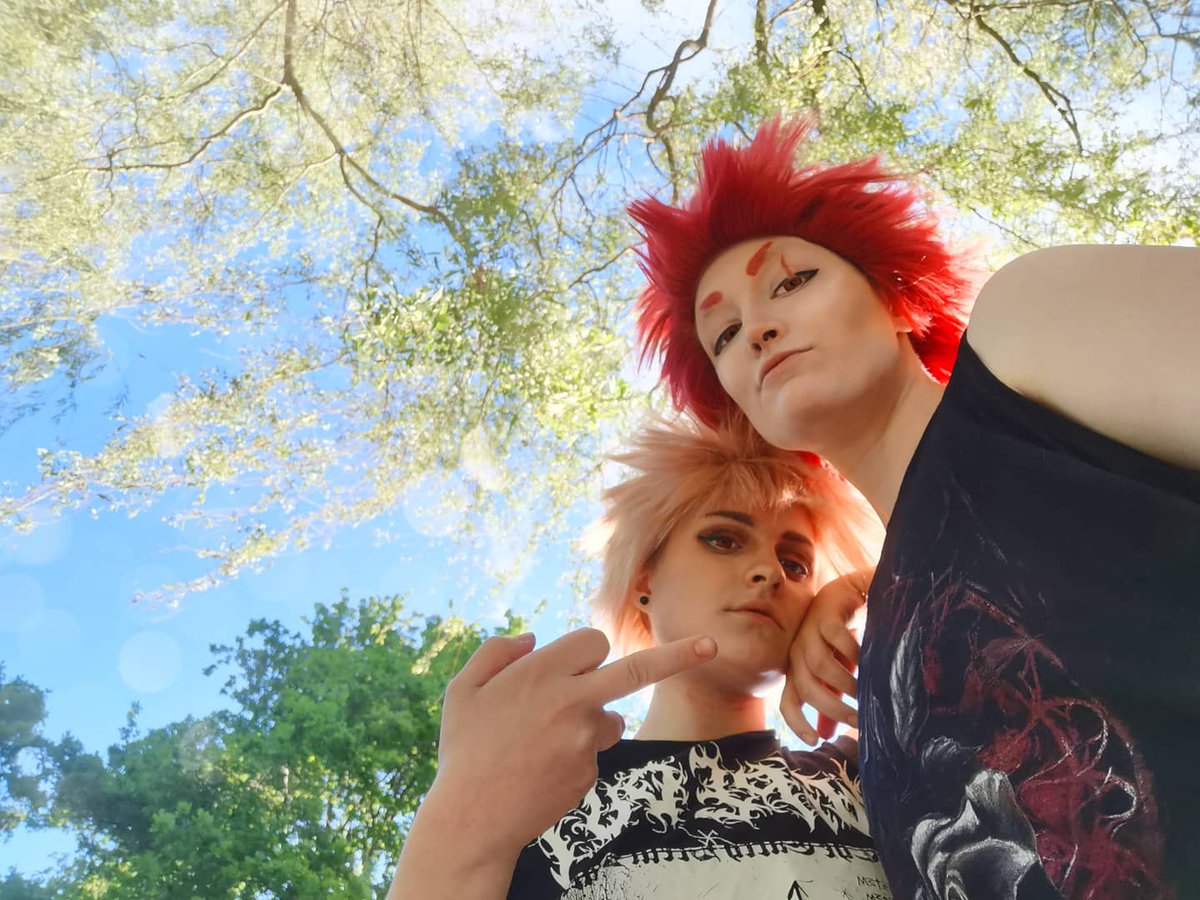 We slay~ One of my newest cosplays, thanks to my cutie 😍💕 fully selfmade ❤️ #bakukiri #bakugou #kirishima #mha #mhacosplay #mhafantasyau #fantasyau #bokunoheroacademia #cosplay #anime #animecosplay #barbarianbakugou