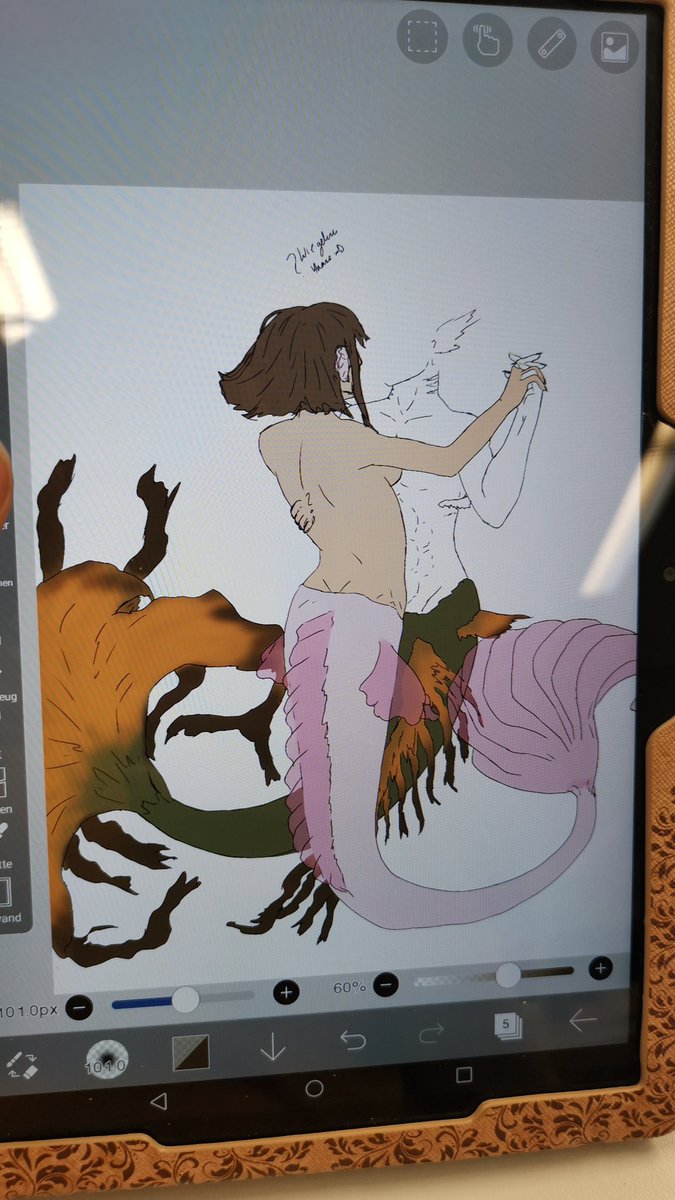 Next step,, color scheme 😁 Let's ignore that I totally not try to avoid the hair and face of Bakugou😂 #tasarusart #kacchako #mermay #sketch #wip #bakugou #ochako #digitalart twitter.com/tasarusart/s…