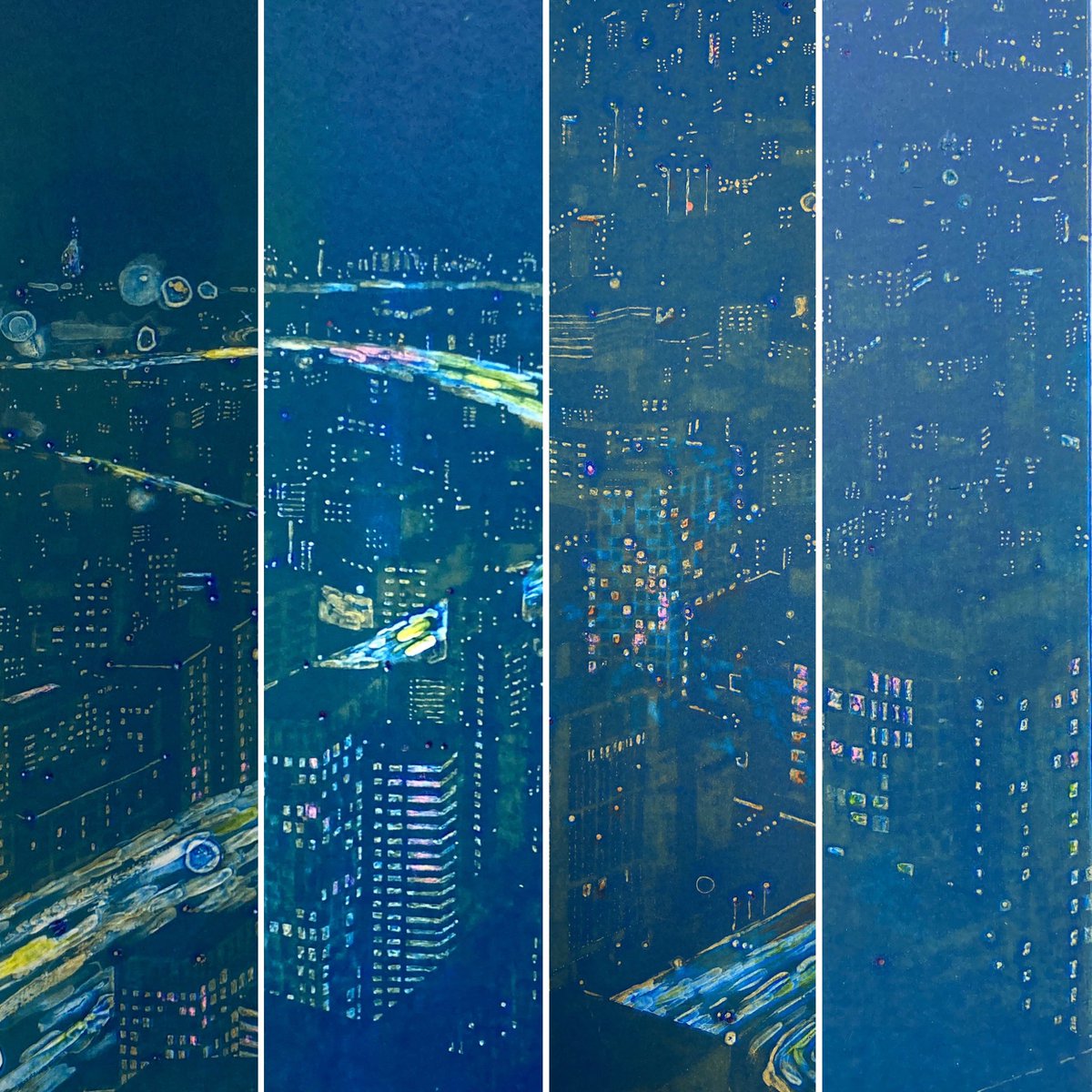 #アナログ絵で魅せてみよ 紙版画で夜景を描いてます。