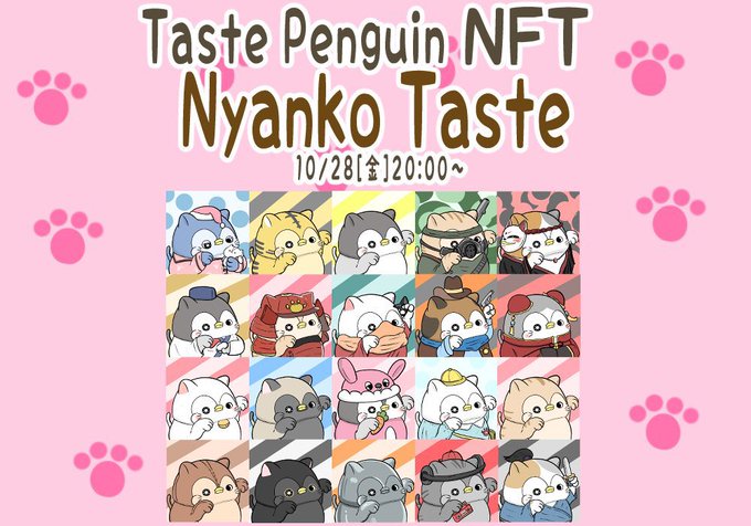 Exhibiting at NFT today at 8pm Japan time! Illustrations of cat-like penguins. 20 kinds in total. Each is one of a kind. Unique to Japan, there are cats in the form of ninja and samurai. #NFT #nftart #NFTs #NFTartist #TastePenguin #NyankoTaste opensea.io/collection/tas…